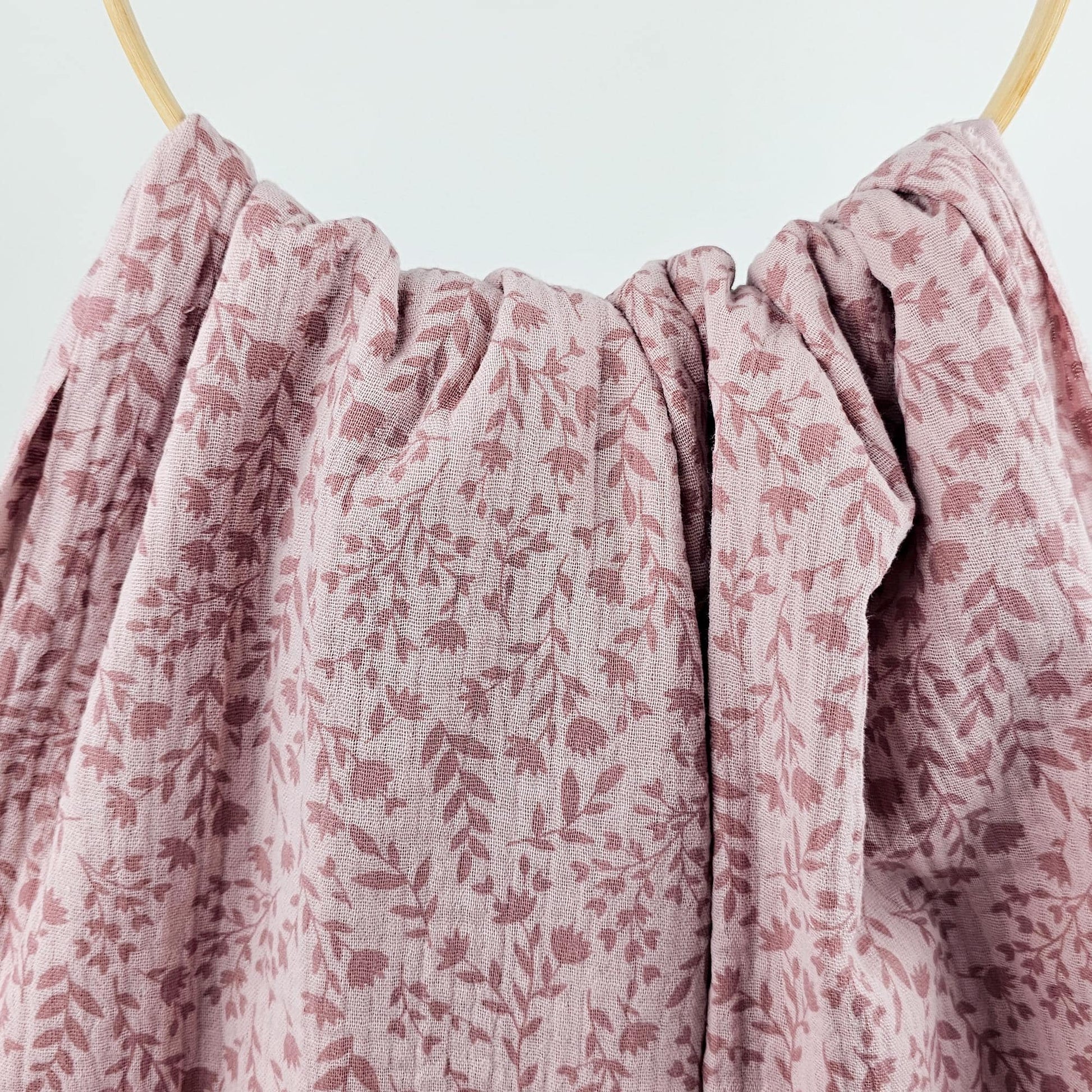 Schöner Musselin aus 100% Baumwolle in rosé mit Blumenprint.