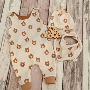 Wunderschöner elastischer Rippenjersey in in hellbeige/cremeweiß mit Bären. Farblich passt der Rib Jersey in kakao-meliert perfekt dazu.
