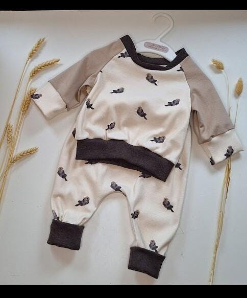 Wunderschöner weicher Baumwoll Rib Jersey in einen sanften beige-Ton mit süßen Ottern.