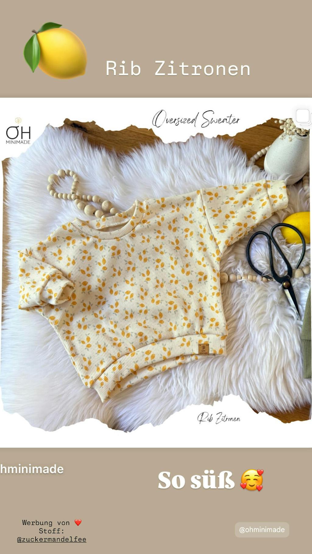 Wunderschöner elastischer Rippenjersey in ecru weiß mit Zitronen. Farblich passt der Rib Jersey in kamel braun perfekt dazu.