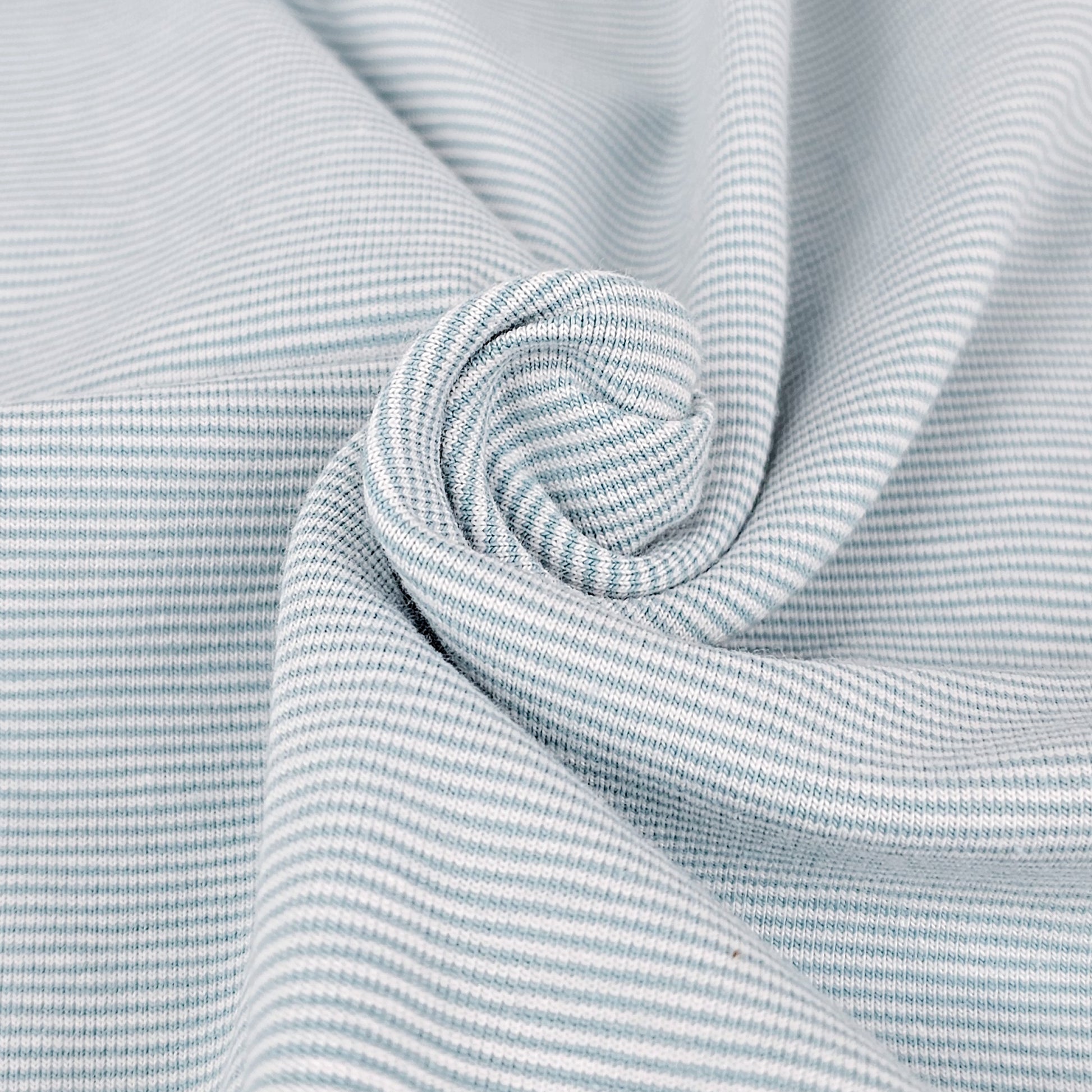 Wunderschöner gestreifter Baumwolljersey in ecru/wollweiß mit feinen Ringelstreifen in mint grün.