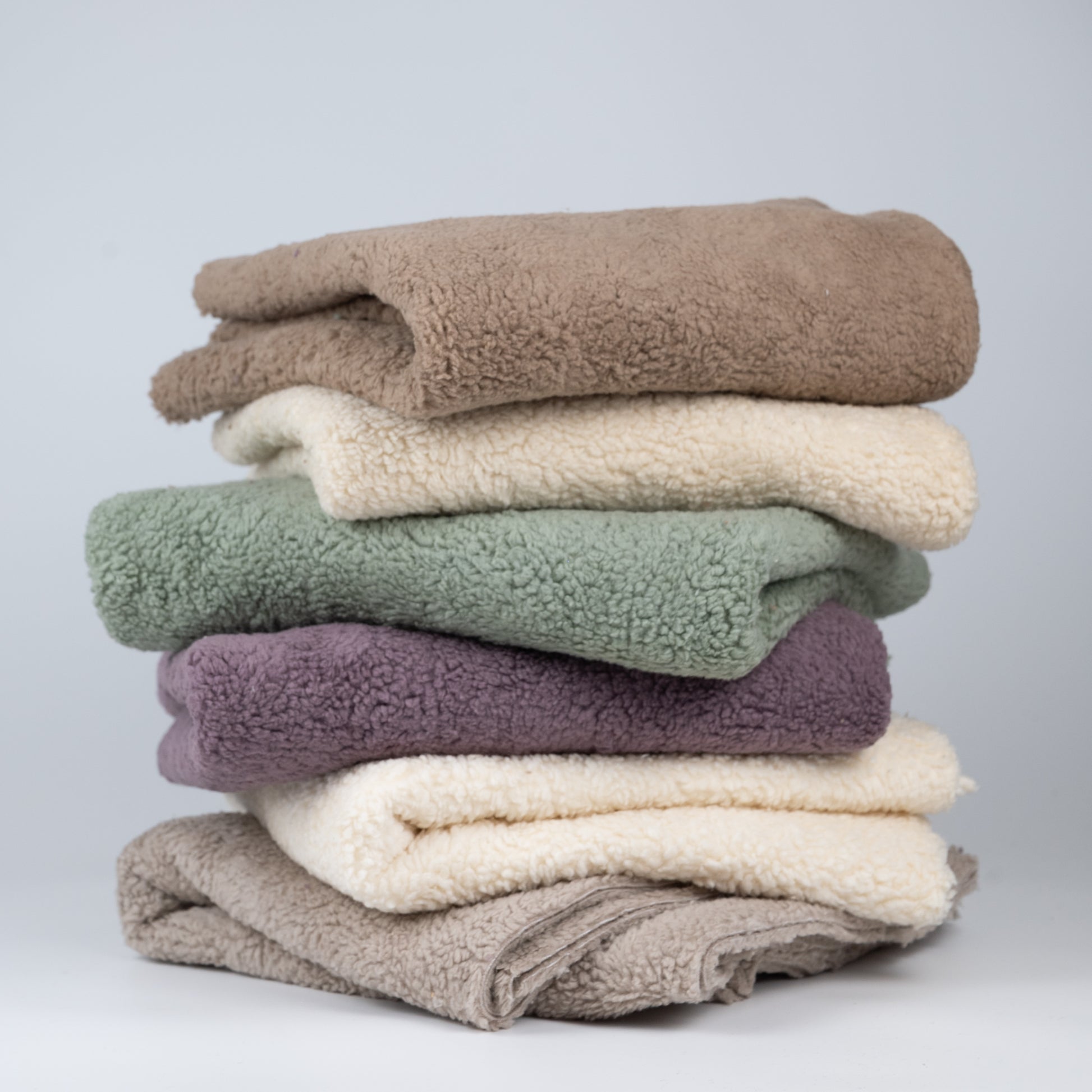 Kuschelweicher Baumwoll-Teddy Stoff in verschiedenen Farben.